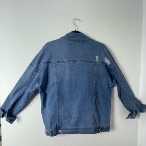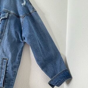 NWOT MAX JEANS BLUE DISTRESSED OVERSIZED DENIM JEAN JACKET LONG SLEEVE SMALL