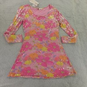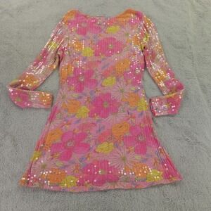 LoveShackFancy Dress Womens Medium Pink Floral Multi Sequin Rupert Passion Sound Mini 70s Retro. New with original tags, original MSRP of $475. No stains, tears, or signs of wear noted, please review all photos. See photos for measurements. Thanks for visiting!