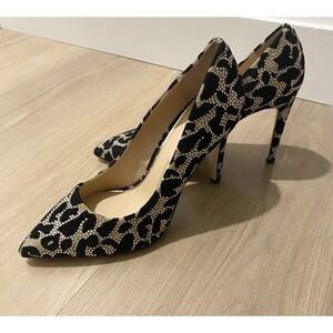 NWOB Gianni Bini Women Black Silver Rhinestone Leopard Pattern 4" Pumps Shoes 8