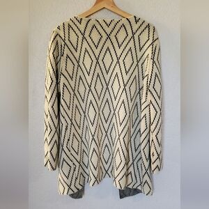 Anthropologie OSCAR By ESCIO Geometric Cream Open Front Knit Cardigan Sweater