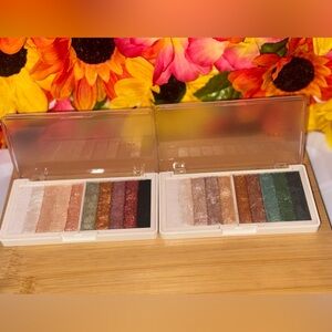 Discover a versatile eyeshadow palette featuring a range of colors for every occasion. Perfect for creating both subtle and bold looks. Bundle of 2 eyeshadow palettes and bronzer.
