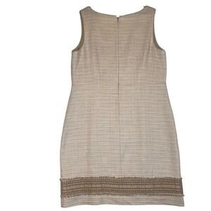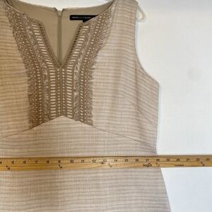 White House Black Market Sheath Linen Blend Dress 12 Oatmeal Office Old Money