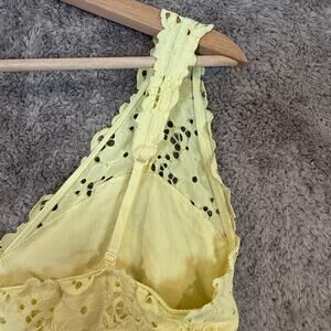 Aerie Butter Yellow Eyelet Lace Crop Tank Top Bustier V Neck XL Extra Large