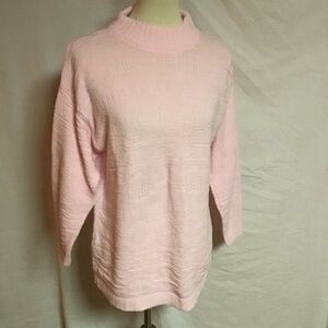 Vintage 80s Pink Textured Knit Sweater | Mock Neck Retro Pullover