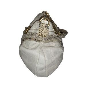 Steven by Steve Madden Hobo Bag Cream Leather Shoulder Bag Turnlock Chain Handle