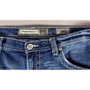 Item: Buckle BKE Jeans Mens 34x33 Blue Tyler Straight Distressed Whiskered Y2K Denim