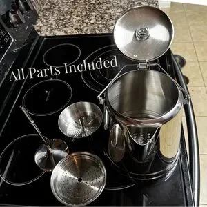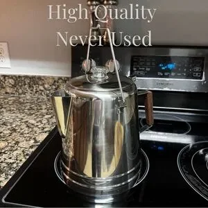 Never used and in flawless condition, it’s versatile for camping, RVing, picnics, or even everyday home brewing. The polished shine and classic design make it as functional as it is stylish. Brew like a pro and start your day right – this is the gold standard for large-group coffee on the go!