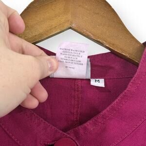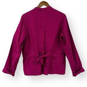 Hot Cotton Magenta Pink Linen Button Front Jacket Blazer Womens Size M Pockets