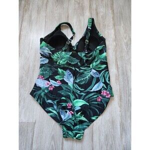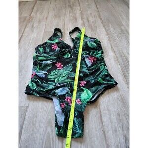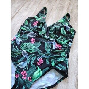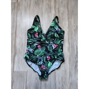 Kona Sol Tie Front Tummy Control One Piece Swimsuit Full Coverage Floral Sz 18