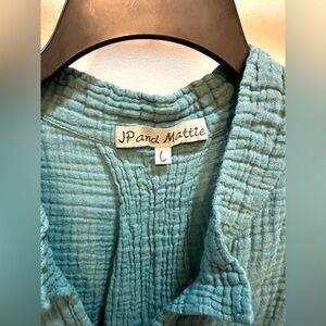 JP and Mattie Green Gauze Cotton Lagenlook 3/4 Sleeve Top Size Large