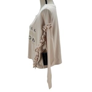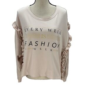 Polly & Esther Long Sleeve Ruffle Shoulder Every Week Is Fashion Week Sweatshirt - Pink - size Large