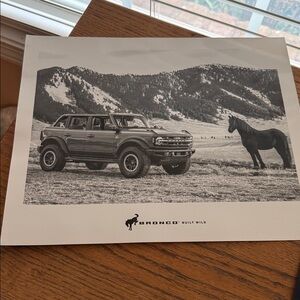 Bronco themed merchandise set featuring a black banner, magazines, and a calendar. Perfect for enthusiasts. I received all the bronco merchandise waiting for my 2022 bronco. Never used.