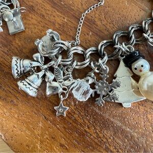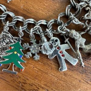 Vintage Sterling 925 Silver Christmas Santa Winter Holiday Skiing (32) Charm Bracelet