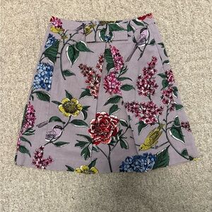 Charming A-line skirt with vibrant floral design. Features red, pink, yellow, and blue flowers on a soft background. Perfect for any occasion.