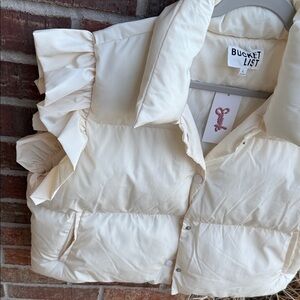 Bucketlist Ladies L “Maria” Cream Ruffle Sleeve Cropped Puffer Vest