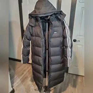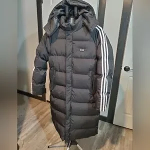 Stay warm and stylish with this Extra Long Black Heated Puffer Coat featuring 100% Polyester Fill & Battery Pack Perfect for cold weather, this coat combines functionality with a modern look. 5 heating Zones Chest Shoulder & Back. 9 hours on low setting, Long Flattering Fit Zip Off Hood.
