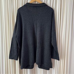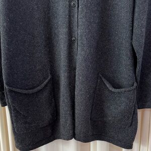 Eileen Fisher Cotton Cashmere Cardigan Boxy Fit Grey Button Front Pocket Sz XL