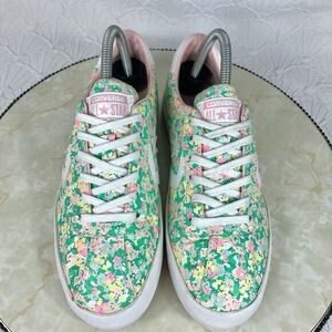 Converse Breakpoint Low Top Sneakers 8 Green/Pink Floral Print Streetwear Shoes