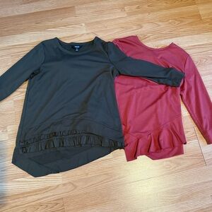 Set of 2 Simply Vera Vera Wang asymmetrical tops. Both size medium. Olive green and red