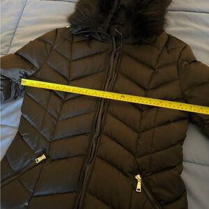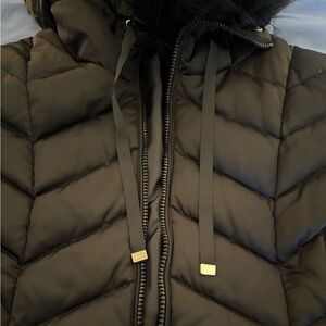 Tahari, down puffer coat, black winter coat, removable hood, faux fur hood, quilted puffer, women coat, warm winter, size medium, like new