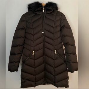 Tahari Black Down Puffer Coat with Removable Faux Fur Hood | Size M | Like New