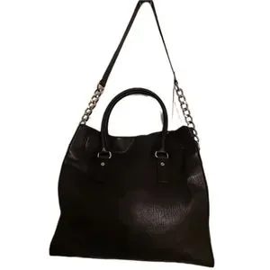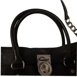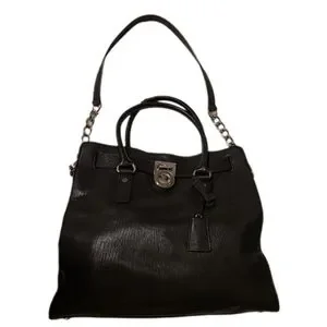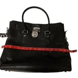 Michael Kors Black Saffiano Leather Hamilton Satchel Tote w/chain strap EUC