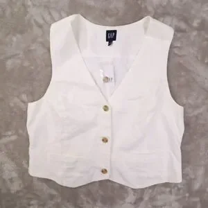 Stylish white vest from GAP. Features button closure. Perfect for layering.