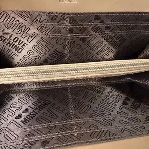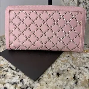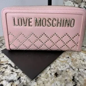 Chic Love Moschino wallet. Soft pink with gold studded design. Stylish and elegant.