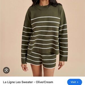 La Ligne Olive and Cream Striped Crew Neck Sweater
