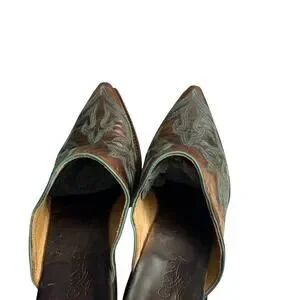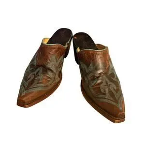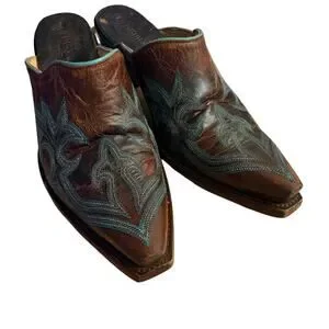 Old Gringo Leather Made In Mexico Brown w/ Teal Detail Western Style Mules sz 8