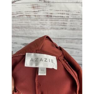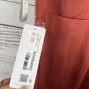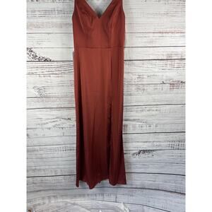 Azazie Dress Women's 4 Rust V Neck Satin Formal Bridesmaid Gown Open Back Slit