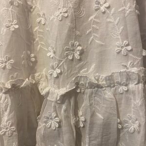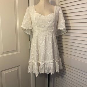 Square Neck Dress in White Embroidery and lace.