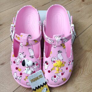 Crocs Peanuts Snoopy Woodstock Mary Jane Clog Pink 211130-90H Womens Size 10 NEW