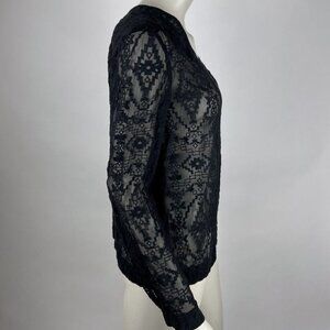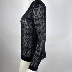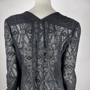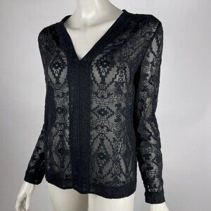 Rebecca Taylor Embroidered Silk Blouse Women 2 EUC V-neck Long Sleeve Sheer Top