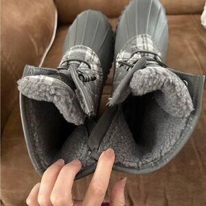 Stylish gray quilted duck boots. Perfect for rainy days with zipper and waterproof