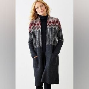 J Jill Newbury Topper Fair Isle Long Line Open Cardigan Wool Blend M