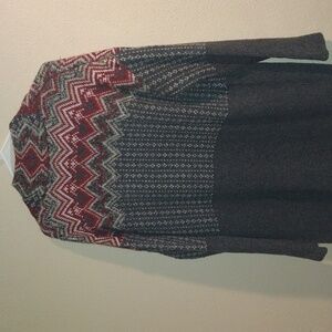 J Jill Newbury Topper Fair Isle Long Line Open Cardigan Wool Blend M. Small hole on back shoulder area (not noticable unless zoomed in) as shown in last picture, but other than that good pre-owned condition