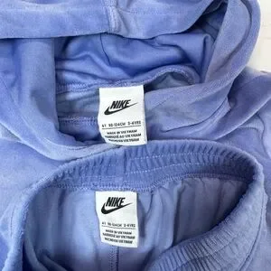 Soft Nike set in lavender. Features hoodie and joggers. Ideal for relaxed style.