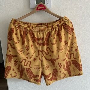 - 7 inch inseam Stylish men's XL shorts with a unique yellow and brown Country Print