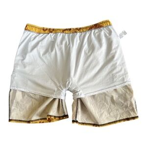 - Silky anti-chafe inner liner, mesh pockets, and small inner pocket for valuables, elastic waistband with internal drawcord