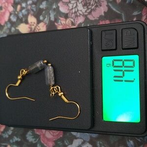 These stunning handmade earrings feature a gorgeous combination of gold and Labradorite's signature adularescence blue flash. Perfect for adding a touch of sophistication to any outfit.