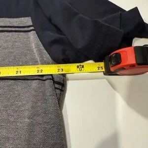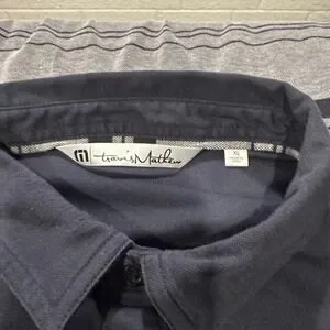 Elevate your game and your style with this versatile Travis Mathew polo shirt. Its sophisticated blue and gray palette, accented with tasteful stripes, transitions seamlessly from the golf course to casual outings. The comfortable fabric and classic polo design ensure you look and feel your best, whether you're hitting the links or enjoying a relaxed weekend. Perfect for a golf outing, a casual day out, or a relaxed dinner.