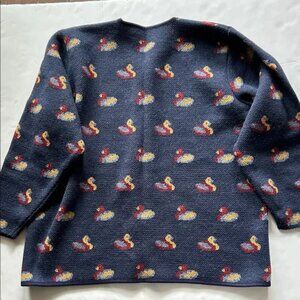 Vitabella Duck Pattern Cardigan Sweater Norway Wool size XL