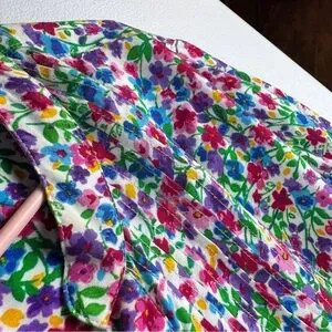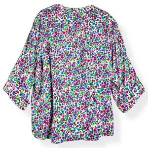 This top is in excellent condition. No flaws. 3/4 cuffed sleeves. Split v-neck with Pintuck detail. Flowy hem. Colorful floral print.
