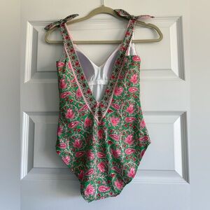 BODEN Bow Shoulder Swimsuit Lime, Botanic Vine Women NWT