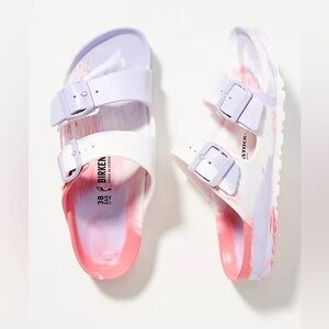 BIRKENSTOCK Arizona EVA Sandals Womens Size 38 (US 7) White Pink Purple Swirls