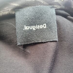 Desigual Jumpsuit With Contrast Neck And Cuffs, VGUC, Approximate Size M. A little but of fuzziness throughout due to laundering, but in overall great shape. Fabric and size tags have been removed. Fabric feels like a very stretchy viscose, and size is about a M based on flat lay measurements below.