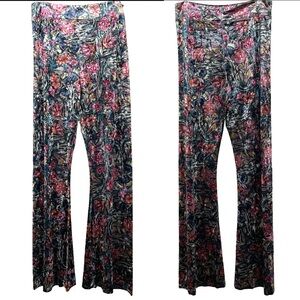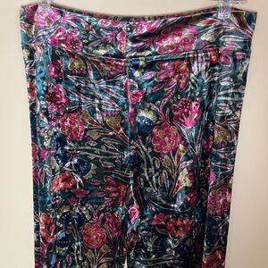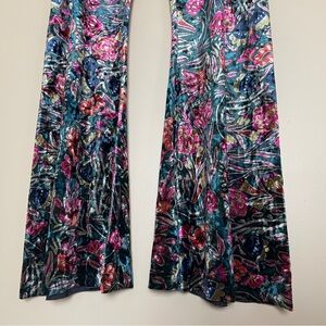 Natural Life Cali Flare Pants Size Large Floral Stretch Velvet Velour Pull On