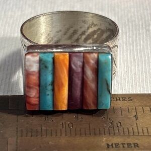 VTG Jay King Mine Finds Turquoise Coral Spiny Oyster Sterling Mens Ring Sz 10.5