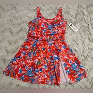 Dive into summer with this vibrant floral tankini top. Featuring a stunning mix of orange and blue hues, this piece is perfect for beach days and poolside lounging.